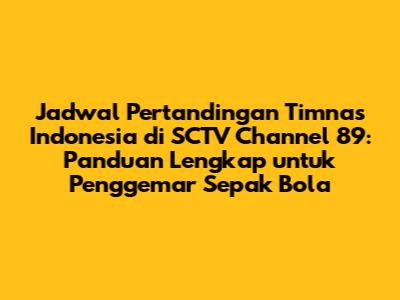 Hai, para penggemar sepak bola Indonesia! Siapa yang tidak suka menonton aksi Timnas Indonesia berlaga di lapangan hijau? Kabar baiknya, buat kalian yang selalu ingin menyaksikan perjuangan Garuda di berbagai ajang, artikel ini hadir sebagai panduan lengkap. Kita akan membahas secara mendalam tentang jadwal pertandingan Timnas Indonesia yang akan disiarkan di SCTV Channel 89. Jadi, siapkan camilan, atur jadwal, dan jangan sampai ketinggalan setiap momen seru dari tim kesayangan kita!